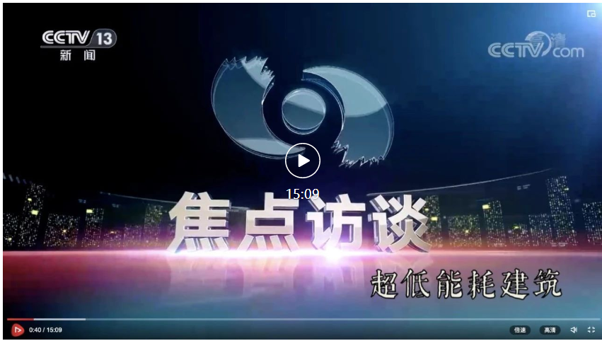 8月24日,CCTV13套《焦点访谈》节目播出了《能耗超低,建筑变绿》专题节目。